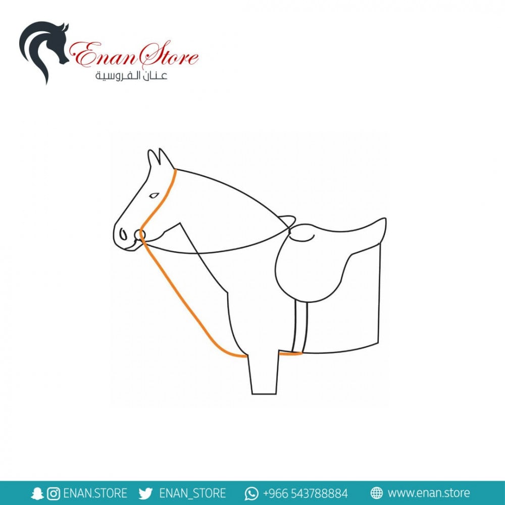 -يتم إنشاء الشريط المطاطي أعلى الرأس ويمتد خلف الأذنين ، ومن خلال حلقات الشكيمة لأسفل ، ويمكن ربطه بأجزاء مختلفة السرج أو حزام البطن لأغراض مختلفة (على سبيل المثال بين أرجل الحصان أو على الحلقات الموجودة أعلى السرج)